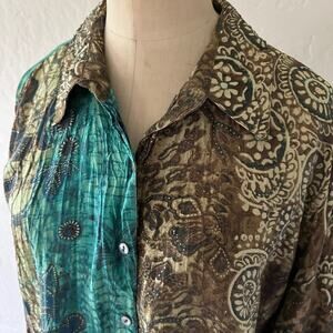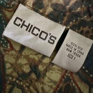 CHICOS | Womens 100% Silk Crinkled Textured Button Down Shirt Size Medium Wacky