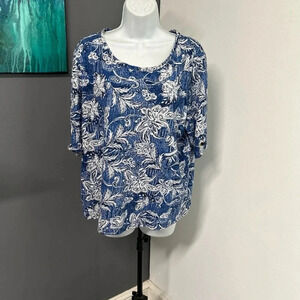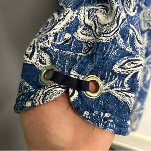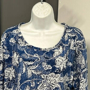 CHICO'S Women’s 3 (L) Pullover Top Blue White Floral Grommet Cottagecore