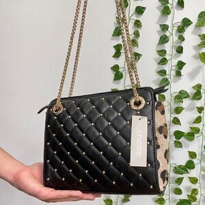 NWT Chico’s Quilted Cheetah Print Chained Bag