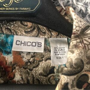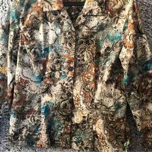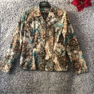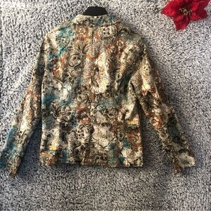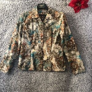 CHICO’S Womens Brown & Blue Floral Button Up Jacket Chico’s Size 1 Or Medium