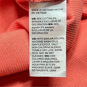 This Chico's Women's Coral Tank Top in size XL is made of high quality fabric with embroidered trim on the neck and arms. The pullover top features a round neckline, wide straps, and a solid pattern in a vibrant coral color. It is suitable for travel, casual wear, and business occasions. Made of a comfortable knit fabric blend of 95% cotton and 5% spandex, this tank top offers a regular fit with easy care and stretch for all-day comfort. Ideal for summer, fall, and spring seasons, this tank top from Chico's is a versatile addition to any woman's wardrobe.