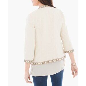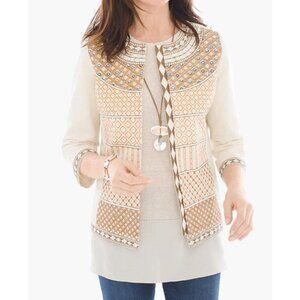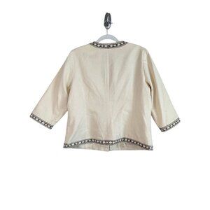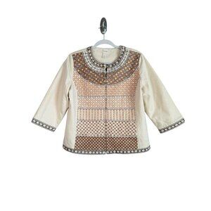 CHICO'S Women’s Embellished Jacket Tan Beige Embroidered 3/4 Sleeves Size 2