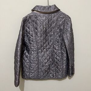 CHICO'S Women's Jacket Coat Taupe Quilted Metallic Python Size 0 or 4/6