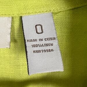 CHICO'S Women's S Lime Green 100% Linen Flyaway Francesca Roll Tab Open Jacket