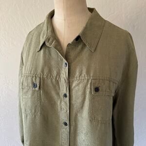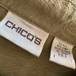 CHICOS Womens Silk Jacquard Linen Blend Shirt Size XL Button Front Long Sleeve