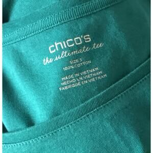 CHICOS Womens Size 3 (US XL) Turquoise 3/4 Sleeve Scoop Neck Ultimate Tee Shirt