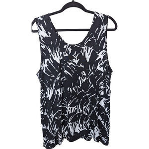 CHICO'S WOMEN'S SLEEVELESS V-NECK BLOUSE, STRETCHY, BLACK/WHITE, SIZE 3 LARGE
