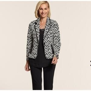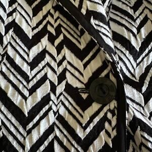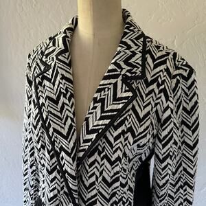 CHICO'S Black / White Chevron Design Long Sleeve Jacket Black Trim