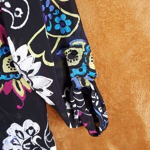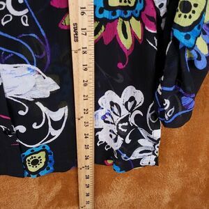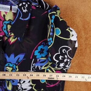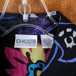 CHICOS Womens Top Size 0 Small Black Button Up Shirt Floral 100% Silk Blouse
