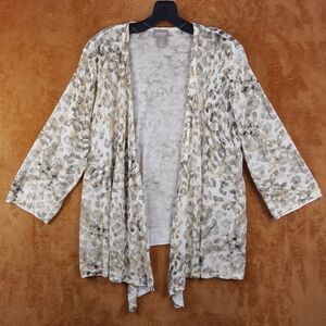 CHICOS Womens Top Size 3 Large Tan Spotted Open Knit Long Sleeve Lightweight