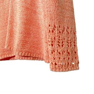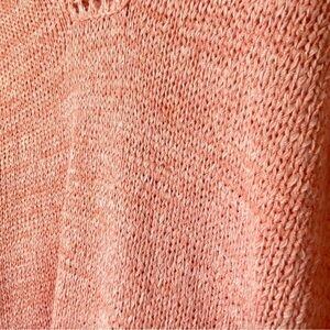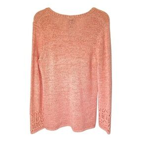 Coral/PINK color. Crochet detail at sleeve cuffs and along collar.