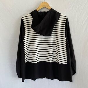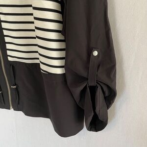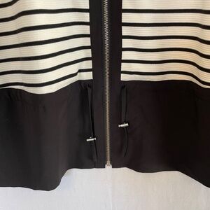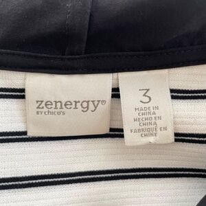 CHICO'S ZENERGY Size 3 US XL Full Zip Jacket Drawstring Drop Waist Black Ecru