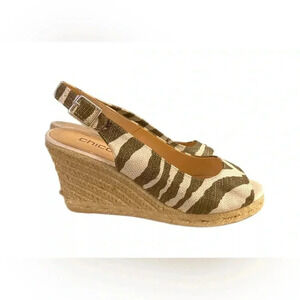 CHICO’S Zebra Print Sandals Women’s Simon Espadrille Wedge Slingback Heels 9