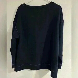 CHICO'S Zenergy Contrast Stitch Navy Blue Tunic Sweatshirt Sweater Size 2 used