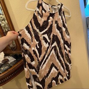 Pre-owned in great condition with no rips or stains. Women’s animal print tank top with gold detailing. Can dress it up or wear it casual. Comes from smoke and pet free home.