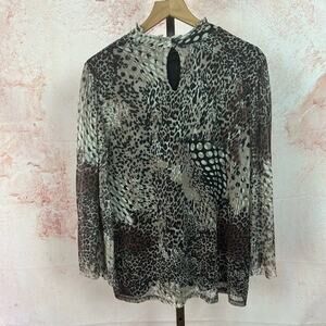 CHICO'S animal print bell sleeve top size XL 3 animal print mesh leopard shirt