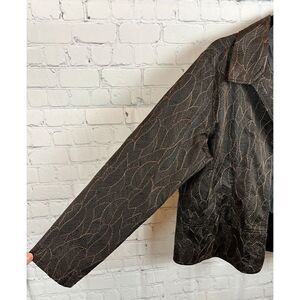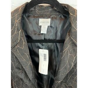 CHICO'S black golden embroidered open front lined jacket blazer 3 16/18 XL NWT