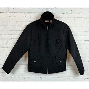 CHICO'S black quilted full zipper collared jacket blazer size 1 M