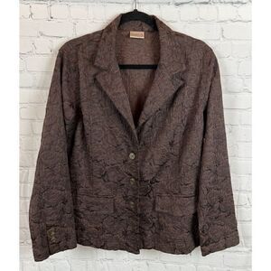 CHICO'S brown floral unlined stretch collared jacket blazer 16-18 (no size tag)