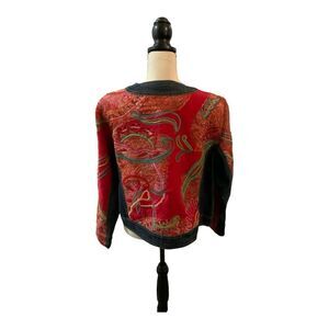 Preowned - CHICO'S embroidered applique denim trimmed semi-cropped Jacket Size 2 US Medium