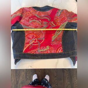 CHICO'S embroidered applique denim trimmed semi-cropped Jacket Size 2 US Medium