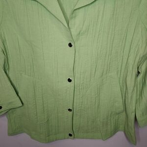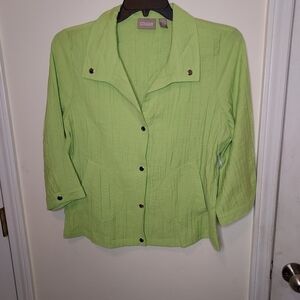 chico's top with collar front pockets and snap closure, lightweight