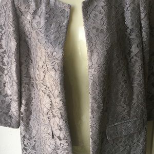 CHICO'S grey lace lightweight blazer w/pockets EUC