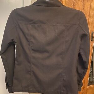 Brown ladies light weight jacket with faint black pinstripe
