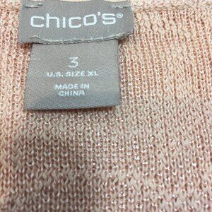 CHICO'S jacquard sz 3 xl open front long knit cardigan pink 18" back shoulder