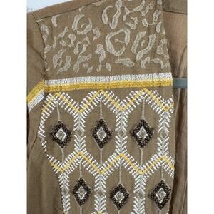 CHICO'S linen blend embroidered beaded 3/4 sleeve short blazer jacket size 0 (S)