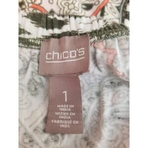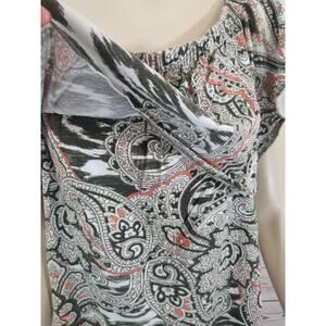 CHICO'S off shoulder top Summer short sleeve Paisley Gray pink size 1 = Small