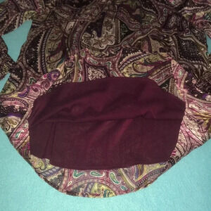 Chico’s paisley print semi sheer long sleeve mock neck, elastic smocking at neck and wrists with bodice lining. Beautiful colors!!