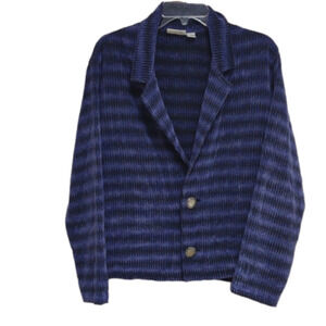This brilliantly designed corduroy blazer from Chicos has a classic southwestern pattern with two large pockets, making it the perfect perfect piece of fashion for any occasion! The purple and black color combination makes it look eye-catching and the fabric is soft and comfortable to the touch.