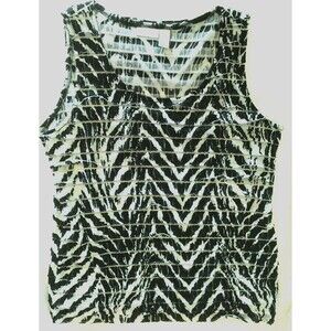 CHICO'S sz 1 sz M Stretch White Black Animal Print Tiered Sleeveless Top