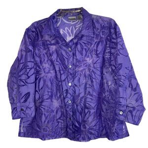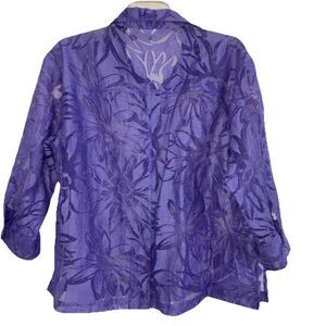 CHICO'S Burnt-Out Purple Button Top or Over-Top - Can be worn as a blouse or an Over-Top over a Camisole. Luxe MOP Buttons down the front and on the adjustable Roll Tab Sleeves; In very good condition and is Fresh & Clean and Ready-to-Wear - Has been laundered in Ecos non-scented soap and hung dry just prior to listing.