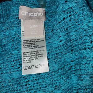 CHICO’S sz S / M Aqua Blue Knit Poncho Wrap Cover Layer Packable