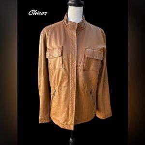 CHICO'S tan Leather Women's Designer Jacket Size M/L