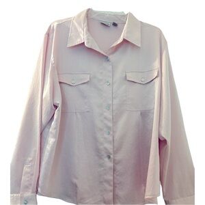 CHICO'S top, satin feel, light pink, size Chico's 3, button down, front pockets