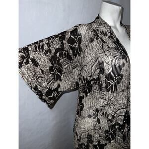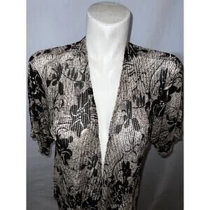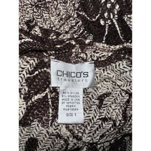 CHICO'S travelers Top Sz M (1) Brown Floral Mesh Open Knit Lightweight Cardigan