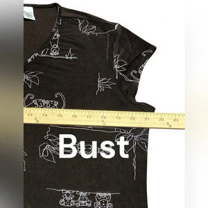 Adorable black knit top with monkey print. V neck, cap sleeves