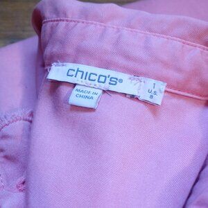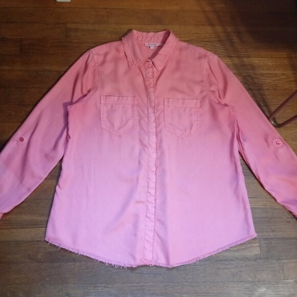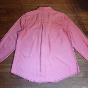 CHICO'S twill fringe hem shirt in coral pink (1/US8)