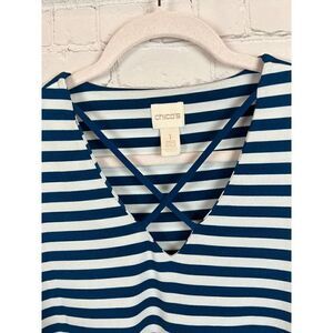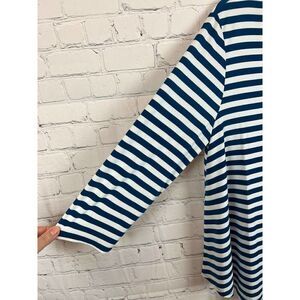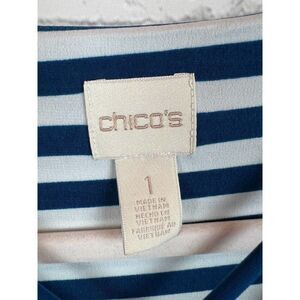 CHICO'S white blue stripes 3/4 sleeve A-line top sweater pullover size 1 8 M