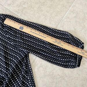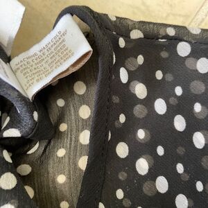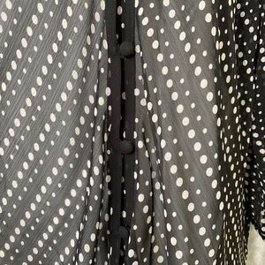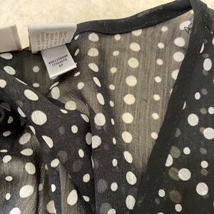 Great travel piece light sheer button/ tie front. Black / white polka dots. Long sleeve w button closure .
