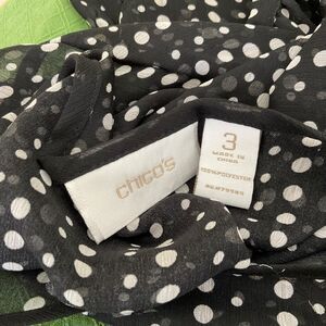 CHICO'S women 3 -US size XL black white Polka Dot sheer tie front poly blouse button up
