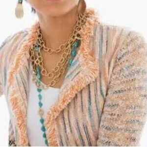 I absolutely love this fringe-lined tweed sweater knit cardigan jacket from Chico’s!