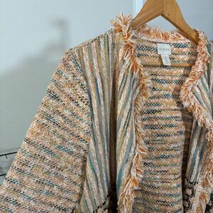 CHICOS 2 (large) Stylish Tweed Women's Multicolor Sweater Cardigan Jacket