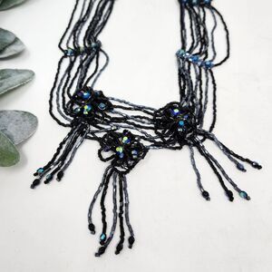 CHICO'S Black AB Seed & Faceted Iridescent Beads Choker Bib Necklace Vintage