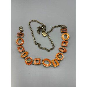 CHICOS~GOLD GEOMETRIC Hammered Enameled ORANGE CHAIN BELT Adjustable