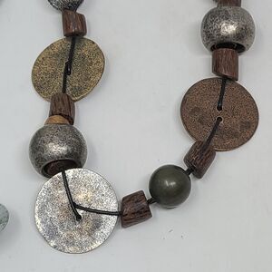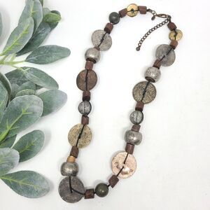 CHICO'S Metallic Disk Wooden Beaded Necklace