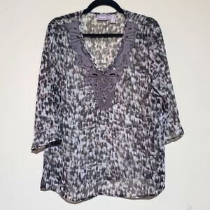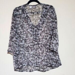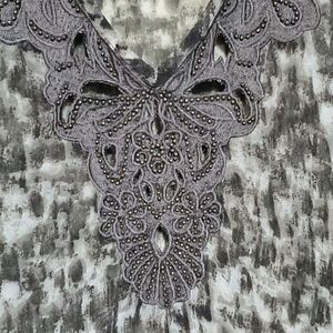 CHICO'S Sheer Patterned Beaded Top - Size 2 (Large)